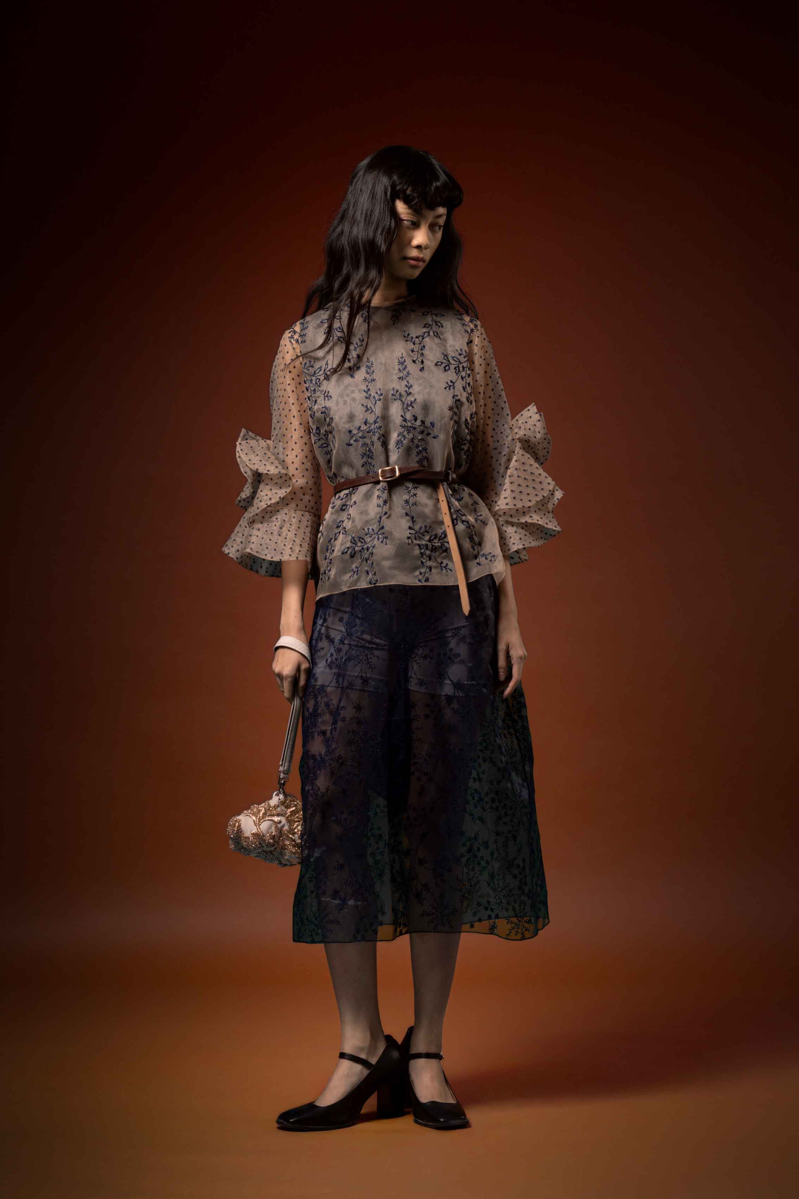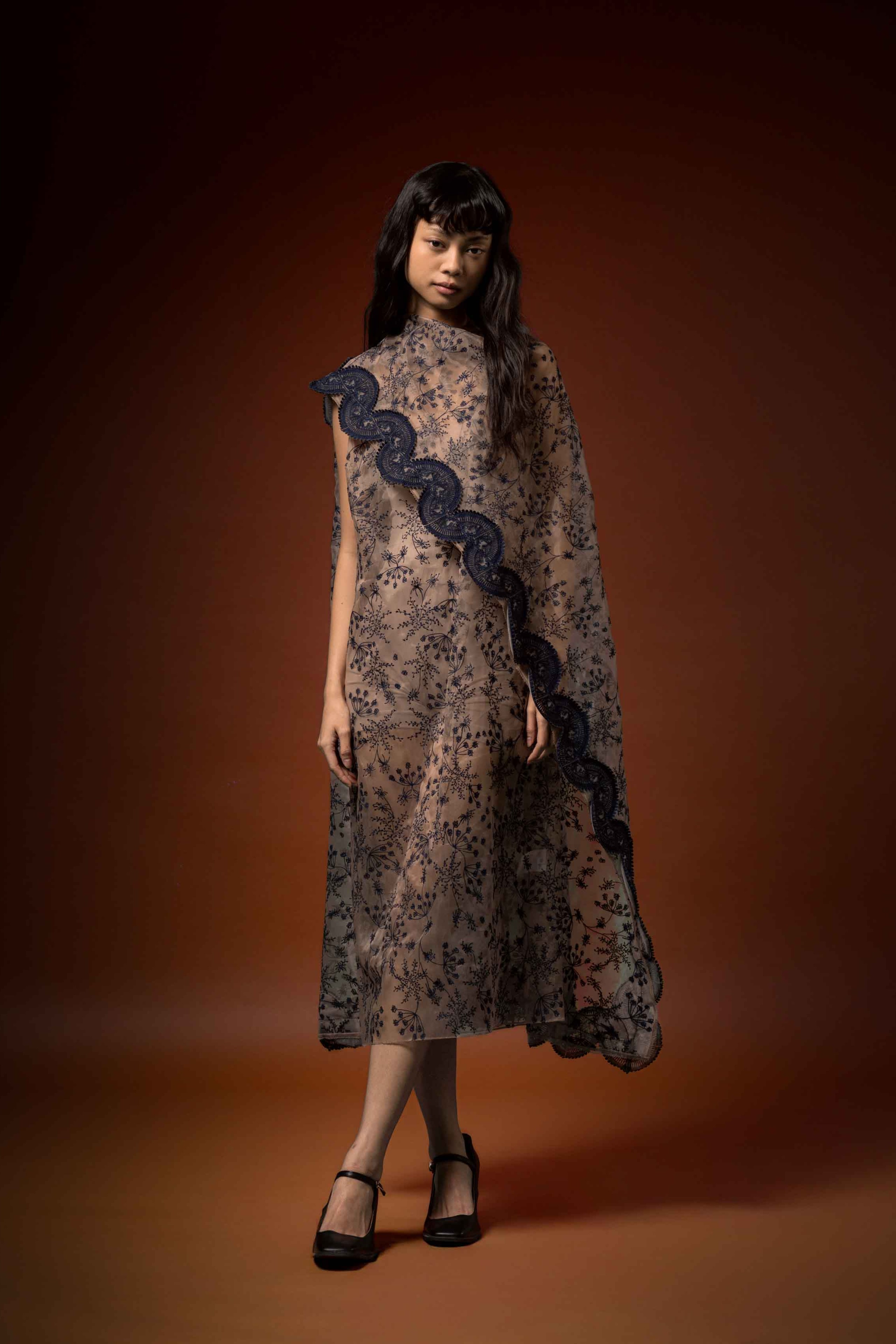 Creative Director Sapto Djojokartiko draws inspiration from the warmth of gatherings and the intimacy of still moments. The silhouettes balance structure and softness through sculptural sleeveless tops, flowing cape dresses, and gentle halter and midi forms. The Maison’s signature motifs—Myrtle, Magnolia Vannya, Daisy, Yayi Turanga, Yayi Darpana, Lace Paisley, Kotak Sangkar, Bar Garis, and Renda Garis—appear in detailed embroidery and texture, enriching each piece with subtle depth and quiet beauty.
